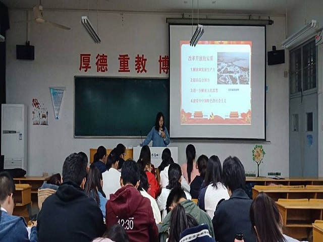 四十年的发展巨变,四十年的劈波斩浪,四十年中国梦想实现了起飞,我们的新时代比任何时候都接近中国梦想。班级团支部开展了改革开放四十年成果宣讲会。团员们在团支书的代领下,回顾了改革开放四十年的发展历程,感触良多。张康琳说,喜看稻菽千重浪,遍地英雄下夕烟。站在新时代的起点,我们新时代的大学生要不忘初心,努力学习。