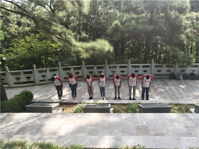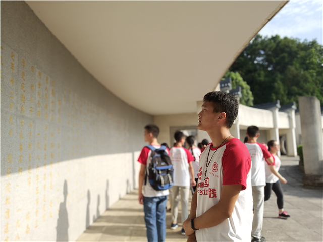 7月25日早上五时许,迎着初升的朝阳,队员们踏上了探访皖南事变烈士陵园的红色之旅。泾县身处新四军革命根据地,为了纪念皖南事变新四军烈士,特在城郊建此纪念馆。队员们首先在门口进行合影留念,等待纪念馆开门后便进去参观。在队长的带领下,队员们参观了园中硕大的英雄纪念墙,写满英雄事迹的功勋墙,庄严肃穆的无名烈士墓。接着沿着陡峭的石阶向上,山顶的巨大石碑令队员肃然起敬。在另一边是烈士墓区,队员们向先烈们敬以鞠躬礼以表达缅怀崇敬之情。最后,队员们参观了皖南事变陈列馆,馆内的实景仿造仿佛再现了皖南事变新四军英雄的英勇,参观结束后队员们在留言板上写下了对先烈们的敬佩。红色之旅圆满结束。