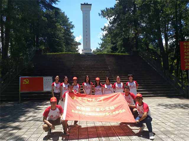 当日上午11点,团队怀着敬畏之心瞻仰参观了岳西市大别山革命烈士纪念馆,了解了大别山区重大革命历史,以及百余位中华著名英烈事迹;瞻仰了李先念,徐向前等党和国家领导人的亲笔题字和大批革命文物。最后,在革命烈士纪念碑前,支教团队庄严宣誓并合影留念,提醒着自己作为中国当代大学生应尽的责任与义务。