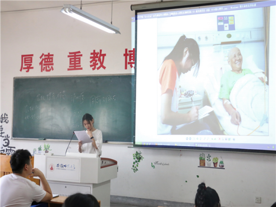 会议伊始,教科院“全心全益”赴芜湖宿州心理服务之肿瘤患者心理状况调研团队负责人何润霄以照顾一位肿瘤患者的心路历程为切入点,分别分析团队工作分配、协作的问题,同时强调社会实践活动爱心和责任心的重要性。随后,教科院“全心全益”赴和县爱心支教团队队长王晨旭结合自身实践经验,讲述了团队前期、中期、后期的工作任务及实践重点,强调各实践团队需统筹全局,做好各团队与实践地的配合工作,查缺补漏。最后,王晨旭队长向与会学生展示了去年社会实践的优秀成果。