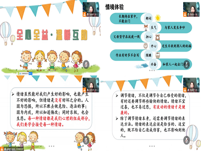 疫情下的线上教育,有别于以往的线下课堂形式的宣讲。“全心全益?温暖互传”心理团队的线上宣讲活动不仅讲解生动有趣的心理专业知识,还给同学们介绍缓和、调适情绪的方法,为中小学生提供了一个全新的心理体验。