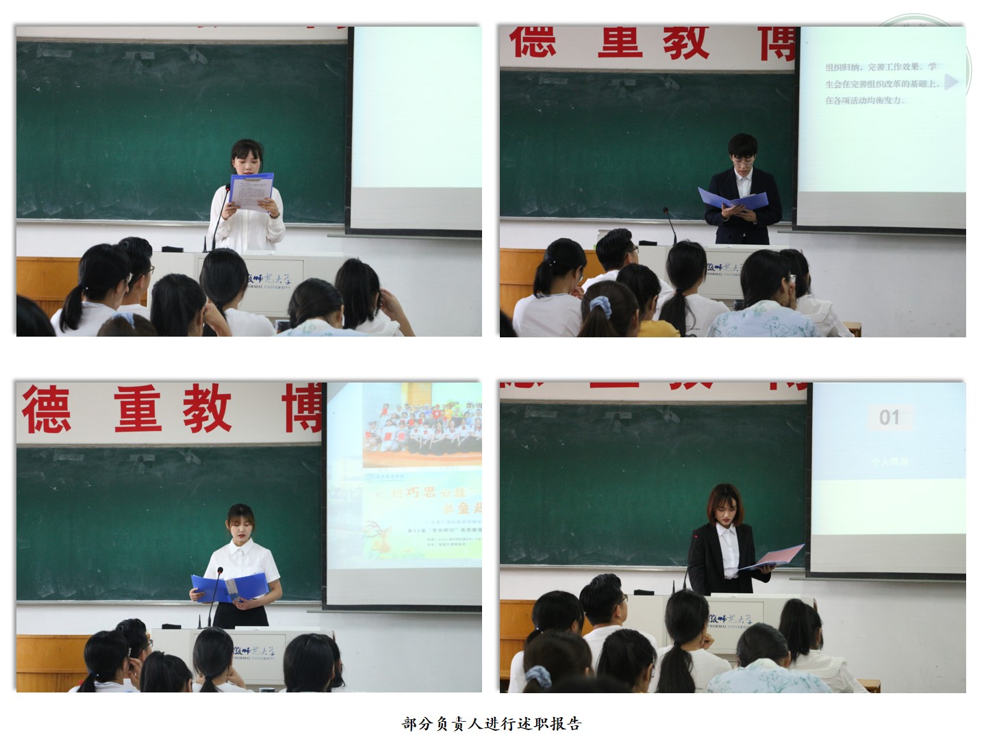 汇报由院团委学生副书记李可恬主持,学生会主席团、团委学生副书记以及学生会和团委各部门负责人在内的26位部门负责人依次进行述职发言。各负责人从开展工作、工作成绩、取得荣誉及收获感受四个方面总结2020-2021学年的工作情况,通过PPT展现数据、图片,让与会人员清楚了解各部门过去一年工作开展情况,向在场团委学生会成员传授了宝贵的工作经验。各负责人指出团委学生会工作的服务性质,并表示作为学生干部,要脚踏实地、投入热情,协调合作、学会沟通,不断反思、改进不足,同时要调节好学习与工作之间的关系,在遇到困难时懂得寻求帮助。