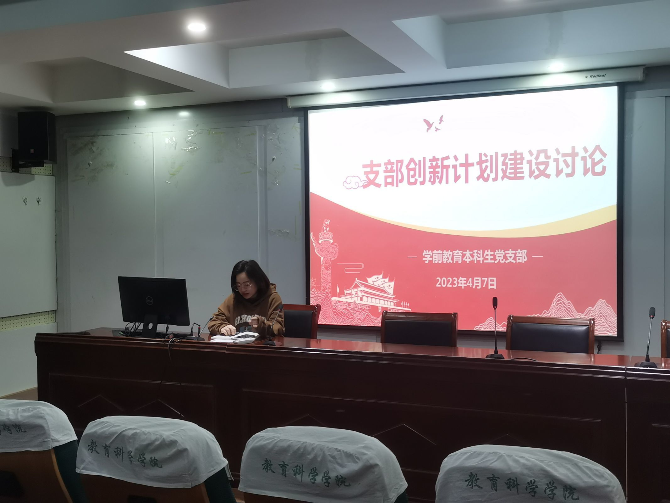 为全面推进支部创新建设,促进支部更稳更快发展,4月7日晚学前教育本科生党支部开展了以“夯实党建基础工作,创新支部活动新形式”为主题的党日活动,活动由支部书记蔡文主持。