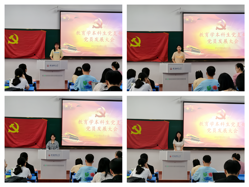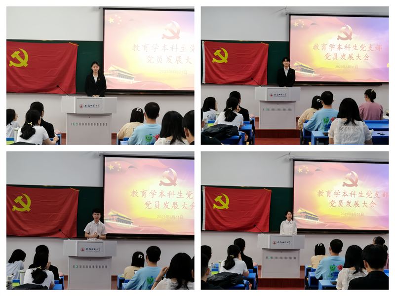 为进一步提升党员发展质量,规范党员发展流程,提高党员党性修养。5月31日下午,在教学楼1103教室,教育学本科生党支部举行2023年上半年党员发展大会暨主题党日活动,支部全体党员以及八位发展对象参加会议,会议由支部书记赵茜主持。