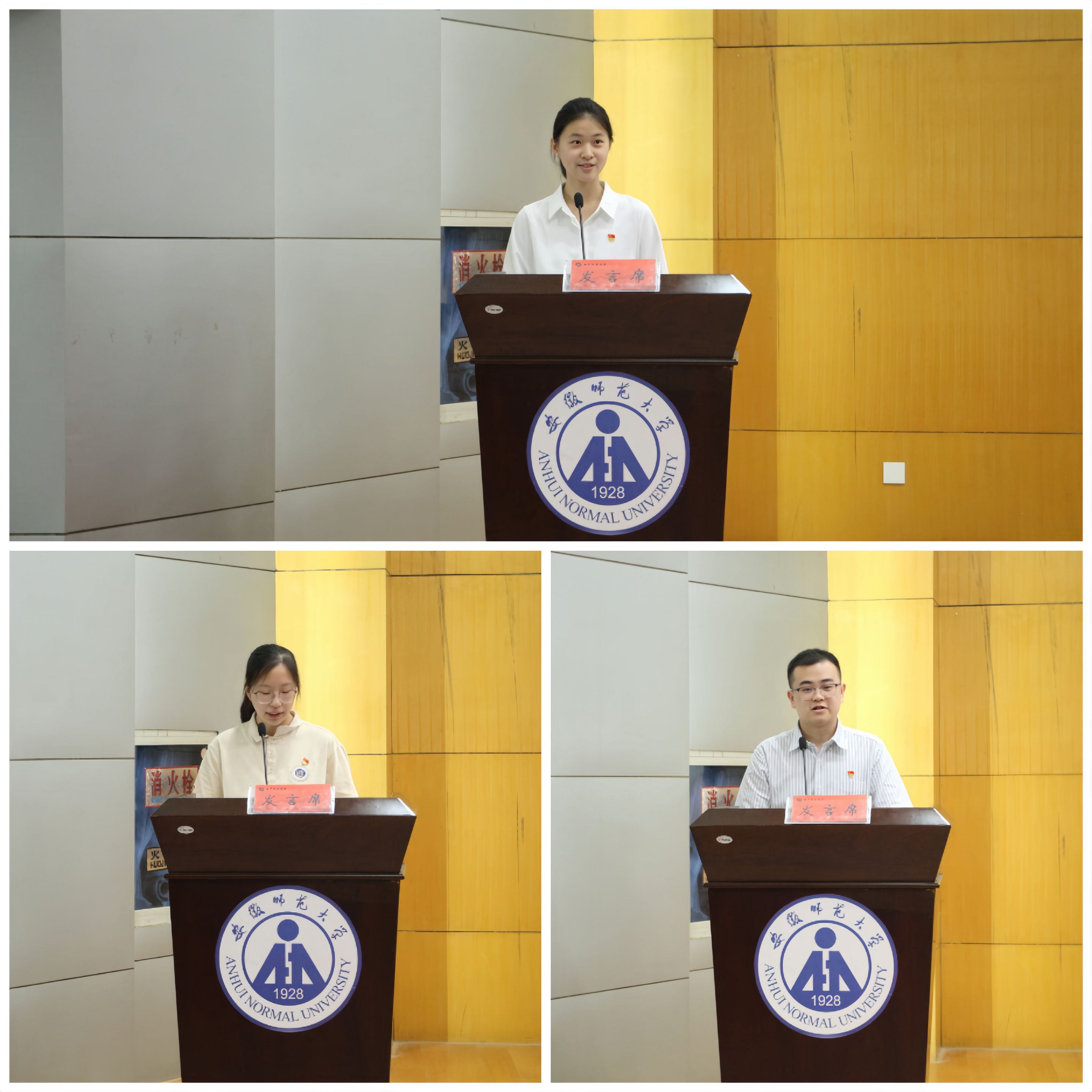 交流会在庄严的国歌声中拉开序幕,全体人员起立奏唱国歌。袁黎平宣读了2022年下半年和2023年上半年新发展党员名单。新发展党员代表2021级教育学专业本科生魏嘉熹交流发言,表达了她对加入党组织的激动与感恩之情,鼓励大家将个人的奋斗融入国家富强和民族复兴的时代洪流中,真正以“功成不必在我”的境界创造“功成必定有我”的成绩,努力成长为堪当民族复兴重任的时代新人。2019级学前教育专业本科生薛敏、2020级教育学方向研究生何亮作为毕业班党员代表依次发言。薛敏分享了自己在大学四年的成长与毕业之际的不舍,号召毕业班党员能够在各自的人生道路上锐意进取、奋发图强,走好每一个过程,做炬火、成光芒,不留遗憾。何亮分享了自己在党组织的培养与关怀下的自我成长和不断提高的心路历程,更加坚定了自己对党的信仰和忠诚,为成为一名优秀的共产党员而不懈努力。