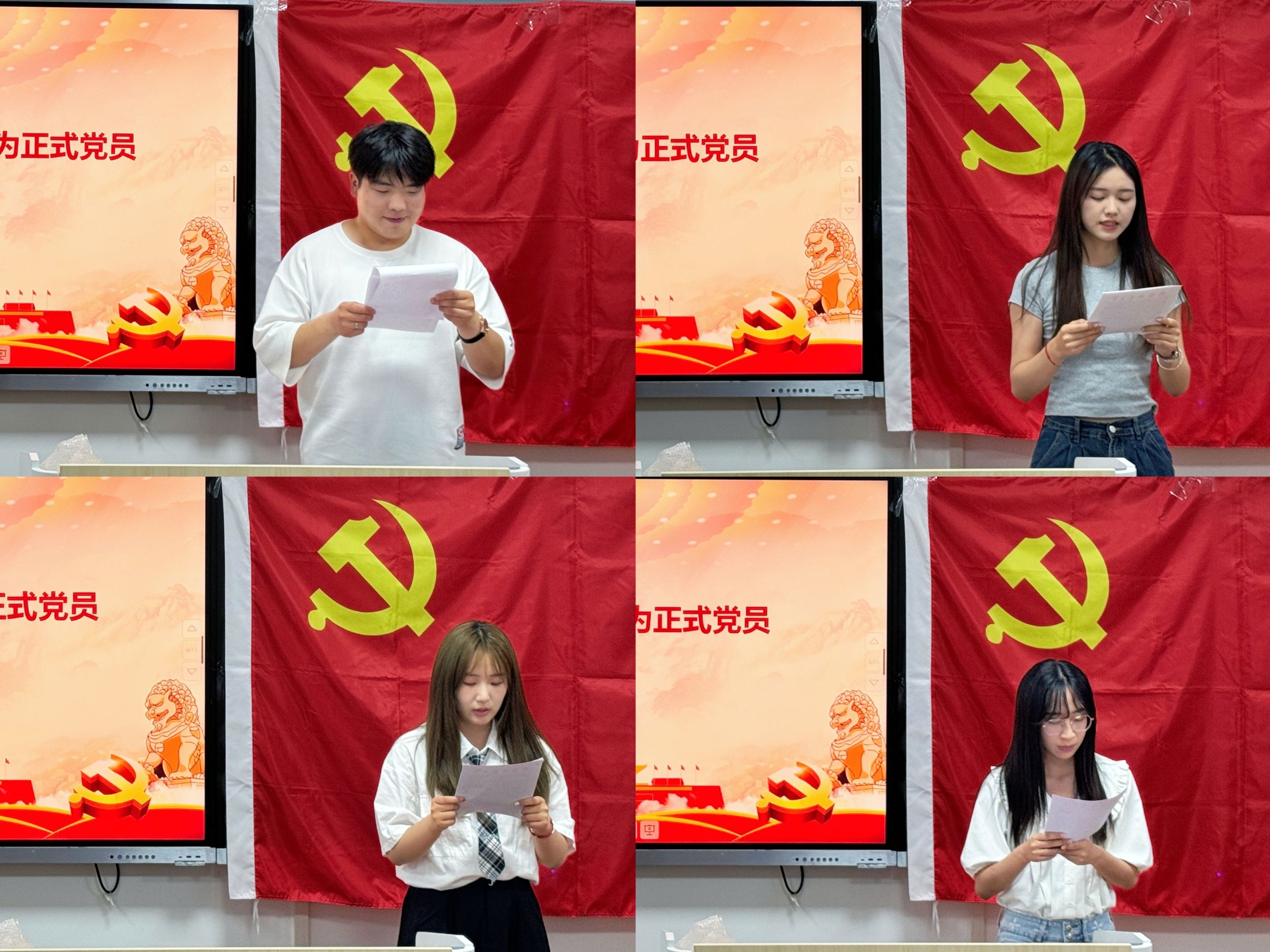 在转正大会上,张理强重申了预备党员转正的要求与程序,大会采取“逐一汇报,逐一表决”的方式进行。七位预备党员王榕耀、马冰月、李睿婳、张萌、马梅、李警予、谢家磊逐一汇报自身在预备期间的表现,并对自己在思想、学习、工作和生活上的进步与不足作了认真的总结。入党介绍人汇报了七位同志在预备考察期间的综合表现,支委会报告了预备党员的综合考察情况,各与会党员分别就七位同志能否转正进行充分讨论。经支部大会无记名投票表决,一致同意七位同志按期转为中共正式党员。