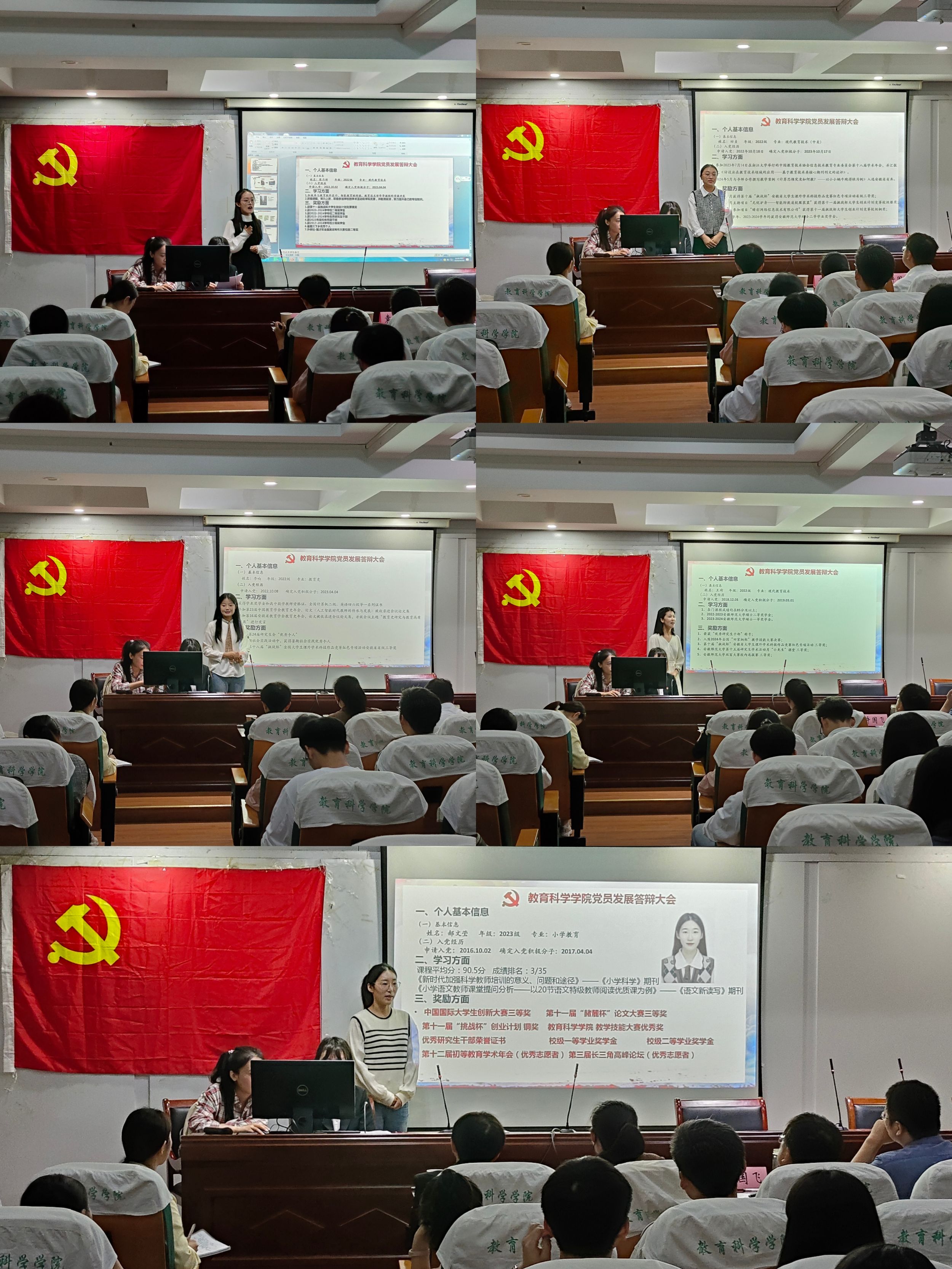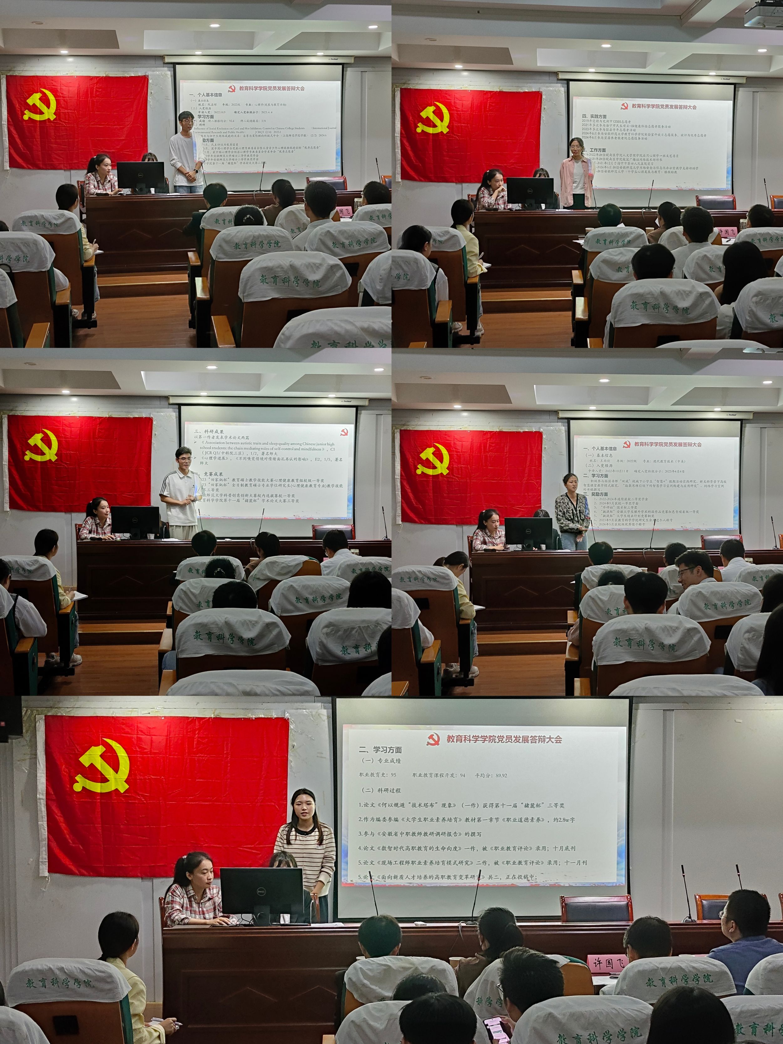 为严格把控党员发展“入口关”,确保党员发展质量,为党组织注入新鲜血液,教科院教育技术学、心理学、教育学、教育硕士第一、第二五个研究生党支部于10月18日下午16:00在教科院313开展2024下半年研究生党员发展答辩大会。院党委书记许国飞、组织员兼党委秘书袁黎平、教育技术学研究生党支部副书记丁晓云及23级研究生辅导员莫大贡组成答辩委员会,研究生入党积极分子代表参加会议。五个支部共10位入党积极分子参加此次答辩,会议由教育技术学研究生党支部书记张怡雯主持。