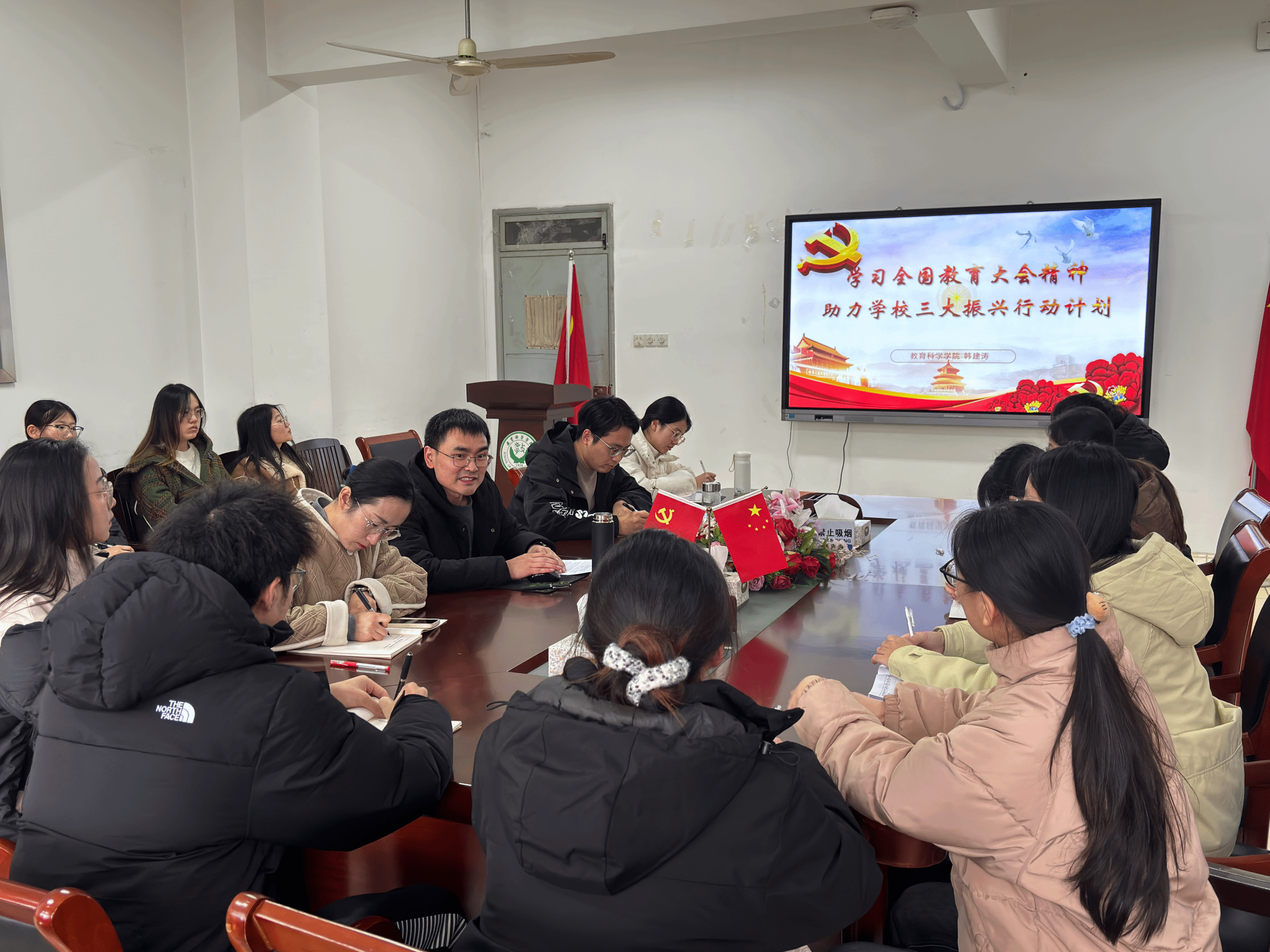 在主题党课上,韩建涛带领支部党员学习了历次全国教育大会的召开情况和重要意义,重点介绍了习近平总书记在2024年全国教育大会上的重要讲话精神。他围绕“教育强国建设的宏伟蓝图”“立德树人与人才培养新模式”“科教融合与创新驱动发展”“教育公平与数字化战略”“教师队伍建设与教育家精神”等方面,进一步分析心理学专业今后的发展前景。随后,韩建涛向支部党员介绍了学校“三大行动计划”的预期目标和具体举措,呼吁支部党员践行当代心理学专业大学生“博览众长,练好内功;友爱互助,健康成长;关心国计,融入社会;相信自己,勇于创造”的使命担当。与会党员认真学习并记录相关内容,深刻理解了全国教育大会精神的重要意义。