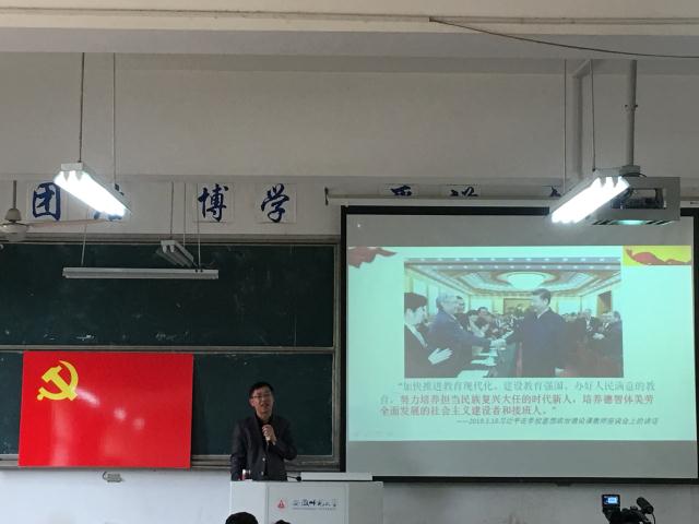 本网讯(教科院 文/吕碧君 图/黄文静)2019年3月30日上午9时,教育科学学院第6期(校第7期)第一次理论课学习在田楼8101教室准时开讲。为满足广大党员同学理论学习需求,保证党课学习有序推进,本次理论课程共上下午两个场次,校党委组织部副部长谢超峰为学员们讲授专题:加强纪律作风建设,永葆先进性纯洁性;马克思主义学院教授张正光为学员们讲授专题:永远跟党走——新时代、新青年、新作为。党课班副班主任程啸老师主持本期培训,全体党课班学员到场学习。