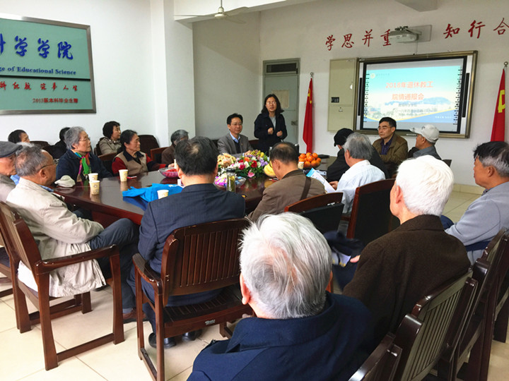 本网讯(教科院 马兴)春暖花开,温情切切。4月13日上午,学院在三楼会议室举行了退休教工座谈会暨院情通报会。学院退休教职工齐聚一堂,相谈甚欢。院党委书记方泓、党委副书记张如华参加了此次会议。