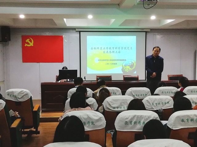 本网讯(教科院 张凯越)为严守入口关,提高发展党员质量,4月29日,教科院教育学本科生党支部举行了2019年上半年本科生党员发展对象答辩会。学院副院长辛治洋、行政办公室主任卞纲要、教育学本科生党支部书记莫大贡担任本次答辩会评委,支部正式党员、预备党员及入党积极分子担任大众评委。答辩会由教育学本科生党支部书记莫大贡主持。