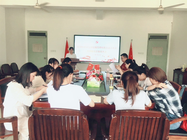 本网讯(教科院 黄文静)2019年5月24日下午12:30,学前教育本科生党支部大会暨预备党员发展大会在学院308会议室举行,副院长张更立老师莅临大会,支部成员以及本次要发展的六名同学参加了会议,此次会议由支部书记龚伟老师主持。
