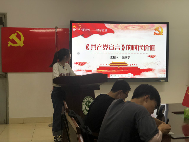 本期主讲人圣家宁同学从解放思想促“五四”,指导建党迎发展和坚持真理显价值三个部分,深入浅出地分析了《共产党宣言》这本由马克思和恩格斯共同完成的经典著作的时代价值,并希望同学们从《宣言》树立的时代视野出发,牢牢把握中华民族伟大复兴伟业的历史方位;从《宣言》揭示的客观规律出发,紧紧抓住中华民族伟大复兴伟业的历史机遇;从《宣言》彰显的价值理念出发,勇于担当中华民族伟大复兴伟业的历史使命。这让我们深切感受到《共产党宣言》作为无产阶级斗争的思想武器在新时代焕发出强大的生命力,其蕴含的马克思主义基本原理将继续指导我们永葆初心,牢记使命,在实现中华民族伟大复兴的历史征程上继续前进。在宣讲过程中,龚伟老师以李大钊与胡适对于问题与主义的争论为切入点,进一步补充说明了理论指导实践的重要性。他希望同学们在大学要培养自己的格局,观天下事,说中国话,做利民人。同时他推荐了张维为教授的节目《这就是中国》,并希望同学们能够加深对祖国的了解与认识,进一步增强道路自信、理论自信、制度自信和文化自信,多做有意义的事情,不断提升综合素养,做一名优秀的大学生。
