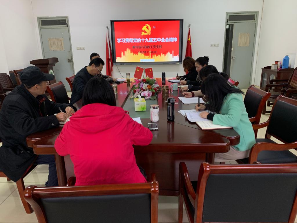 本网讯(教科院 黄引娣)11月26日上午,我院行政教工党支部在学院308会议室开展了学习贯彻党的十九届五中全会精神暨师德师风建设专题学习会,行政支部全体党员参加会议,会议由支部书记卞纲要主持。