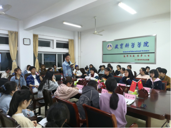 本网讯(教科院 秦灿)为帮助学员们建立良好的人际关系,2021年4月23日晚,教科院“入党启蒙教育”培训班于教育科学学院308会议室举行主题辩论赛。参加本次辩论赛的有学前教育本科生党支部副书记蔡文、20级辅导员梁冬,17、18、19级“驻班党员”与“先锋导员”,启蒙班全体成员。特邀17级教育技术学专业程凤、17级应用心理学专业郭仁龙、18级学前教育专业李可恬前来观赛。