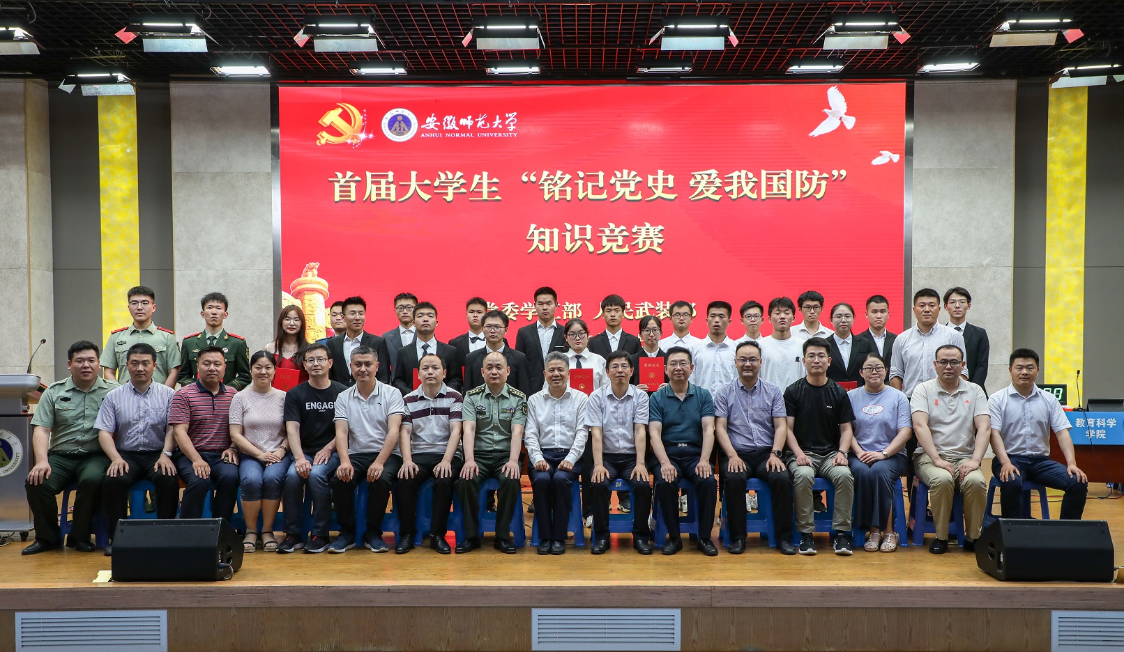 本网讯(教科院 杜安、蔡文)为庆祝中国共产党成立100周年,增强大学生国防观念和国家安全意识,“青春心向党奋进新征程”安徽师范大学首届大学生“铭记党史 爱我国防”知识竞赛决赛于6月11日晚在花津校区理科大楼报告厅举行。校党委常委、副校长陆林,学工部部长、学生处处长刘晓宇,宣传部副部长王峰出席活动并为获奖选手颁奖。晋级决赛学院的党委副书记以及师生代表200余人参加了活动,教科院共有四位同学参与此次比赛。