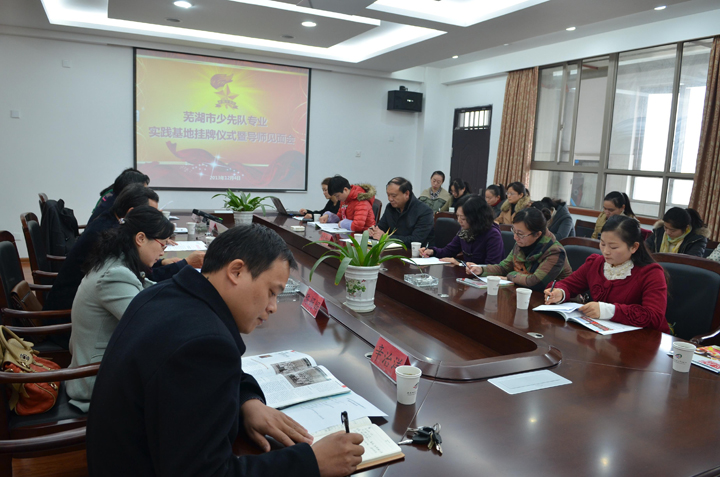 2013124下午,芜湖市少先队专业实践基地挂牌仪式暨导师见面会在安徽师范大学附属小学召开。团市委副书记陈娟娟,市教育局副局长魏超,团市委学少部部长陶涛,市少工委少先队总辅导员吴亦文,安徽师范大学附属小学校长郁培林,育红小学副校长方芳,以及我院副院长阮成武教授、辛治洋教授、相关专业老师和研究生参加了本次会议。会上授予安徽师范大学附属小学和芜湖市育红小学为“芜湖市少先队专业实践基地”,并为郁培林校长和孔祥明校长颁发了“少年儿童组织与思想意识教育”硕士点校外导师聘任证书。会议还研究了“少年儿童组织与思想意识教育”学科课程设置。
