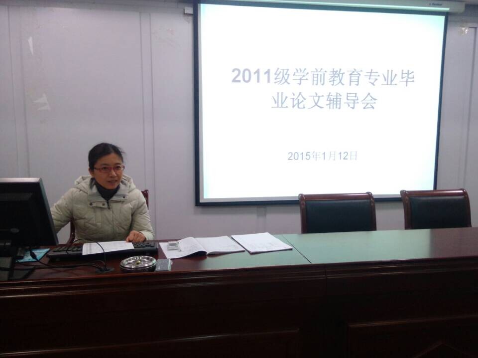 本网讯(教科院 胡亚荣)1月12日下午,2011级学前教育专业学位论文专业辅导会在教育科学学院学术交流中心举行,专业负责人吴玲教授主持会议,2011级学前教育专业全体同学参加了会议。